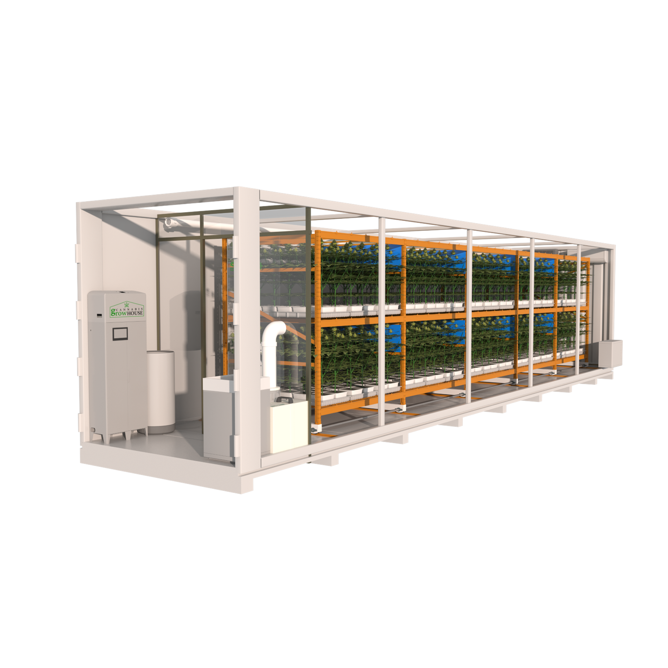 Die 40 Fuß HC Containerfarm setzt sich aus zwei maßgeschneiderten Containern zusammen, die darauf ausgerichtet sind, insgesamt ~270 Pflanzen in der Blütezeit zu beherbergen und eine nachhaltige Ernte von etwa ~25 kg alle 12-13 Wochen zu ermöglichen.